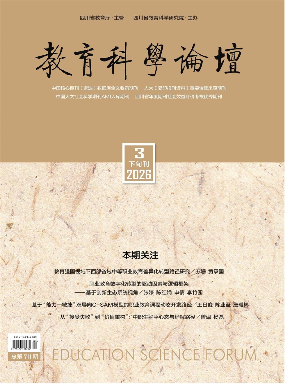 《教育科学论坛》是一本由四川省教育科学研究院主办的教育期刊,1987年创刊,办刊以来,融指导性、实用性、知识性于一体,发行周期为:旬刊,经过杂志社调整,不断提高了刊物的整体质量,在行业内有一定的影响。