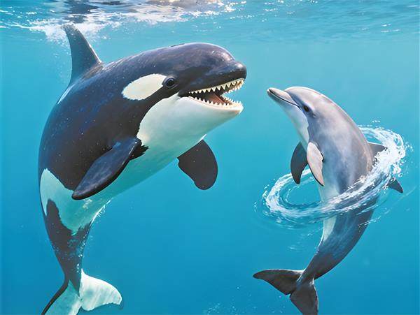 在蔚蓝的海域中,一组不同寻常“饭搭子”关系正在上演。 你或许以为海洋中的捕食者总是独来独往、竞争激烈,但《科学报告》上的一项新研究却向我们展示了一幅和谐共处的画面:虎鲸竟与太平洋短吻海豚并肩捕食,甚至还大方地分享美食! 这项由加拿大戴尔豪斯大学科学家历时5年进行的研究,首次在加拿大不列颠哥伦比亚省温哥华岛附近的海域,记录了虎鲸与海豚之间可能存在的合作捕食行为。科学家利用无人机、水下摄像和声