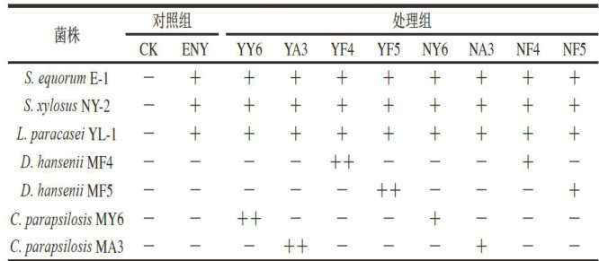 摘要:为探究不同酵母菌菌株及其接种方式对即食发酵香肠感官属性、理化特征及风味的影响,在细菌发酵剂(马胃葡萄球菌(Staphylococcus equorum)E-1、木糖葡萄球菌(Staphylococcus xylosus)NY-2和副干酪乳酪杆菌(Lacticaseibacillus paracasei)YL-1)的基础上,将汉逊德巴利酵母(Debaryomyces hanseni)MF4、D