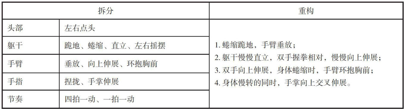 舞蹈是人们表达真实情感和认识世界的一种艺术形式。与程式化的舞蹈学习相比,幼儿舞蹈创编更能激发幼儿的主动性、想象力与创造力,契合《3-6岁儿童学习与发展指南》中艺术领域所强调的“感受与欣赏、表现与创造”的核心目标。幼儿舞蹈创编的目的在于鼓励幼儿通过身体动作进行探索与想象,但在当前的教学中,仍存在“重技能模仿、轻创造引导,重结果展示、轻过程体验”的现象。因此,构建以幼儿为中心、符合幼儿身心发展规律的舞