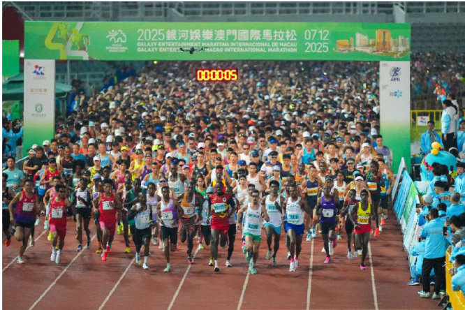 2025年12月7日,由體育局、銀河娛樂集團及澳門田徑總會聯合主辦的“第44屆銀河娛樂澳門國際馬拉松"於奥林匹克體育中心運動場盛大舉行。本屆賽事吸引全球頂尖跑手參賽,全馬男子組由肯尼亞名將杰志釘(VictorKipchirchir)以2小時09分27秒刷新大會紀錄奪冠,女子全馬則由埃塞俄比亞的辛妮(MastewalBirhanuSenay)封后;澳門選手馮瑛和吳楊楊分別稱霸本地男、女子組,展現主場