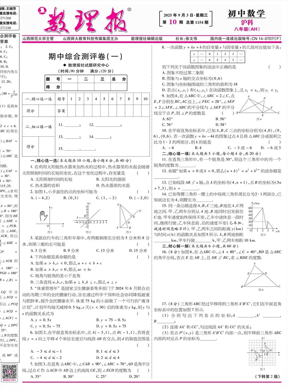 《数理报》是由山西省教育厅主管,山西师范大学主办,面向全国发行的中小学生理科教学辅导类报纸