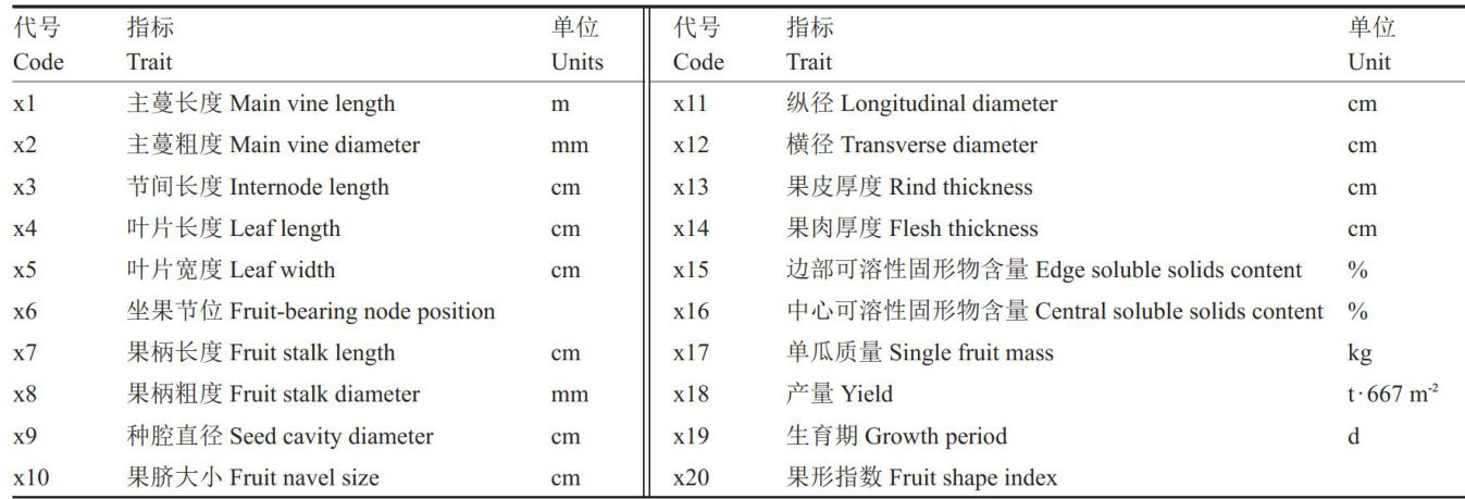 摘要:为丰富我国甜瓜种质资源库,从中东-中亚引入60份厚皮甜瓜种质资源,对其19个表型性状进行了初步研究,并采用基本统计量、相关性、主成分及聚类分析等分析方法进行综合评价。结果表明,19个表型性状的变异系数为 4.32%~54.98% ,其中果脐的变异系数最大,为 54.98% ,产量遗传多样性指数最高,为2.25。H9-52、H9-40和H9-37生长势较强;H9-25、H9-13和H9-15果脐较大;H9-17单瓜质量较大,H9-10和H9-13瓜皮较厚,H9-50瓜肉较厚。产量和生育期所受影响因素众多,相关性分析表明这两者与其他性状的相关关系也最复杂。主成分分析将19个性状简化为8个主成分,累计贡献率为 86.044% ,命名为生长势因子、形态因子、产量因子、品质因子和熟期因子。聚类分析将60份种质资源分为5类,不同类群在产量、生长势、熟性方面差异显著。综合评价居前五名的厚皮甜瓜品种为H9-17、H9-26、H9-15、H9-29 和H9-30。结果表明,引入的中东-中亚甜瓜种质资源具有丰富的遗传多样性,对拓宽我国甜瓜育种的遗传基础具有重要价值。
