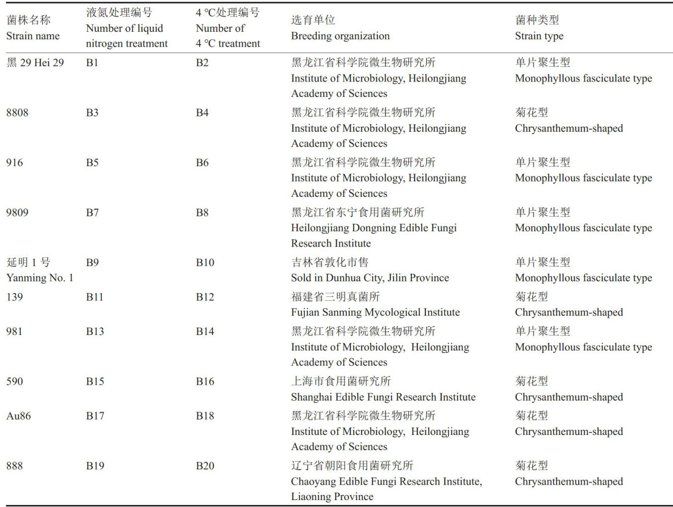 摘要:为研究不同保藏方法对黑木耳菌种性状的影响,以10株分别采用液氮保藏和 4°C 斜面移植法保藏20年的黑木耳菌种为供试材料,采用生长状态测定、栽培出耳、酯酶同工酶和ISSR分子标记等方法对不同保藏方式的长期保藏效果进行研究。结果表明,同一菌种在菌丝长势和生长速度方面,液氮保藏整体表现显著优于 4°C 斜面移植法保藏;出耳方面未见显著差异。不同保藏方式下的同一菌种的酯酶同工酶聚类分析图谱相似系数均为1,ISSR 分子标记聚类分析中相似系数均高于0.90,说明不同保藏方式下同一菌种之间高度相似,但仍存在一定差异,可能是菌种长期 4°C 斜面保藏或者传代过程中出现了变化。研究结果对黑木耳菌种长期保存以及保持生产性状的稳定性具有重要意义。