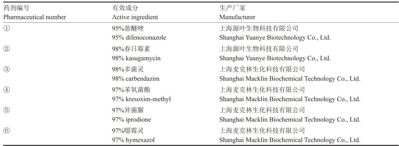 摘要:为筛选能兼防魔芋根腐病和叶斑病的高效杀菌剂,为魔芋田间病害防控提供科学依据,本研究通过室内抑菌试验,分别测定 95% 恶醚唑 .98% 春日霉素、 98% 多菌灵 97% 苯氧菌酯 97% 异菌脲 97% 噁霉灵6种药剂对魔芋根腐病病菌茄腐镰孢菌(Fusariumsolani)和叶斑病病菌细极链格孢菌(Altemariatenuissima)的抑制率及毒力 (EC50) 。结果表明,异菌脲和恶醚唑对两种病原菌抑制效果均优于其他药剂。针对根腐病病菌,异菌脲的 EC50 为 24.27μg?mL-1 ,浓度 (ρ ,后同)为 32μg?mL-1 时抑制率达 56.78% ;恶醚唑的 EC50 为 55.92μg?mL-1 、浓度为 320μg?mL-1 时抑制率为74.86% 。对于叶斑病病菌,恶醚唑的 EC50 低至 0.08μg?mL-1 、浓度为 81μg?mL-1 浓度时抑制率为 71.67% ;异菌脲的EC50 为 1.81μg?mL-1 、浓度为 8μg?mL-1 时抑制率达 69.83% 。综上所述,异菌脲与恶醚唑对魔芋根腐病病菌和叶斑病病菌均具有强抑制活性,可作为田间兼防药剂的候选,但后续需进一步验证其登记合规性与田间实际防效。