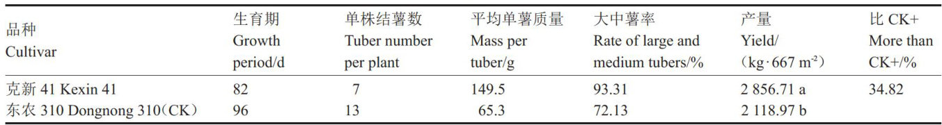 摘要:克新41是以FL1533为母本、克新27为父本通过有性杂交系统选育而成,属于中熟、淀粉加工型品种。该品种的生长周期为 82d 植株半直立,株高 48.8cm 左右。茎绿色带褐色斑点,茎翼波状,叶绿色。花序中等大小,蓝紫色花,花冠近五边形,天然结实。结薯集中,块茎短卵圆形,黄皮淡黄肉。单株结薯数5\~7个,平均单薯质量 147.9g ,商品薯 (>75g) 率 85.08%~95.70% 667m2 产量 2900kg 左右。块茎干物质含量 Π(μ) ,后同 123.6% ,淀粉含量 18.8% ,粗蛋白含量 2.22% ,还原糖含量 0.068% ,维生素C含量 24.87mg?100g-1 ,符合淀粉加工要求。中抗晚疫病,抗 PVX病毒病,中抗PVY病毒病。适宜在黑龙江省各生态区种植。2023年通过农业农村部非主要农作物品种登记。