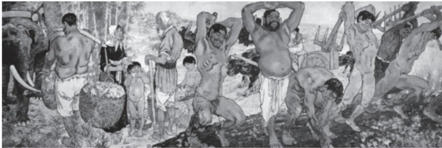 基于潘诺夫斯基图像学的基本原理,从前图像志的描述、图像志的分析、图像学的阐释三个层次对徐悲鸿先生的《愚公移山》(见图1)进行解读。从最基本的画面内容入手,结合时代背景、作者经历、创作动机等方面,探寻出《愚公移山》的价值、《愚公移山》的表现形式以及所蕴含的精神价值,感悟出作品中传达的时代思想。 《愚公移山》是近现代大师徐悲鸿先生的国画代表作之一。《愚公移山》创作于 1940年至1941 年,取材于