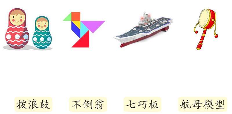 一、将下面的玩具与其名称连一连。★ 二、关注加点部分,照样子,补充句子。★★ 1.例:我看见喜鹊阿姨站在窝边,一会儿教喜鹊弟弟唱歌,一会儿教他们做游戏,一会儿教他们学自己发明的拼音字母…… 一群小鱼在池塘里玩耍,一会儿__________,一会儿__________,一会儿__________…… 2.例:田野葱葱绿绿的,像一片柔软的绿毯。 天空__________的,像________