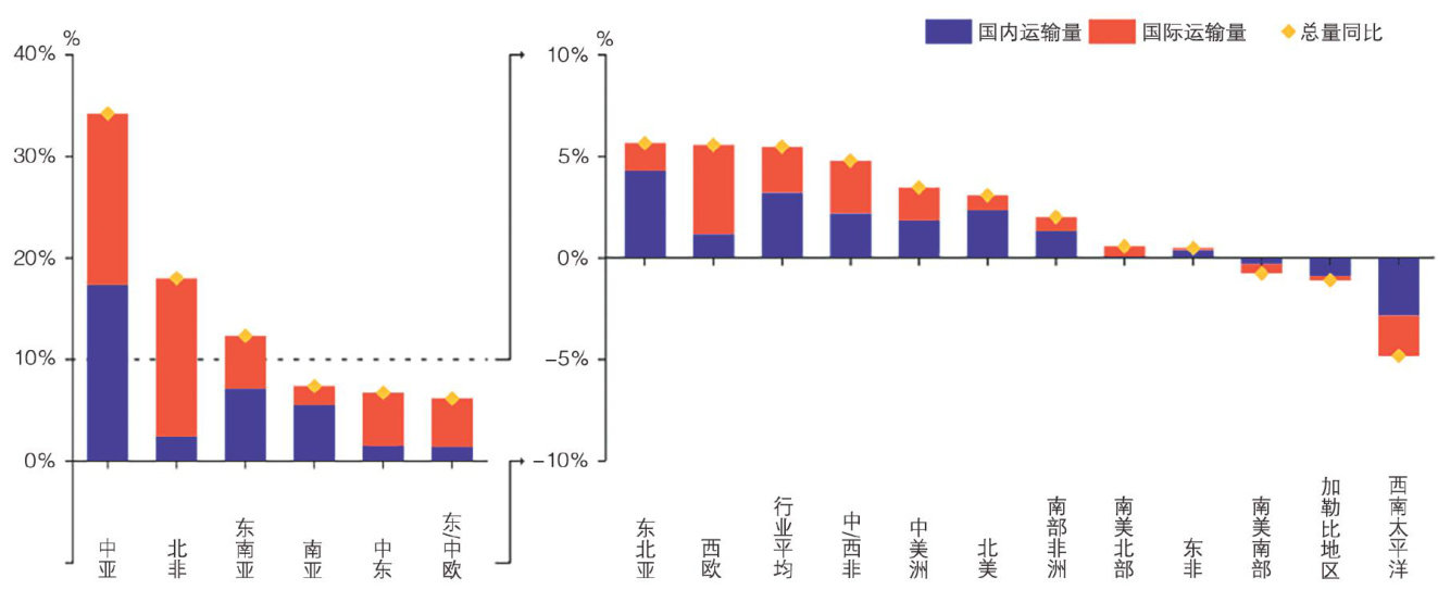 提要:2025年全球航空运输业面临保护主义升级与宏观经济放缓的双重挑战。国际航空运输协会2025年发布的《保护主义抬头:2025年全球航空运输业展望》指出,尽管面临保护主义抬头、贸易政策收紧及供应链持续中断的挑战,全球航空业在动荡环境中仍展现出韧性盈利能力:预计2025年行业净利润达360亿美元,创历史第三高位,但净利润率仅 3.7% ,约为全球行业平均水平的一半。支撑利润的关键因素包括燃油价格下跌、创纪录的载客率以及机队利用率提升。但是同时,运力严重受限抑制了增长潜力,客运量增速放缓至 5.8% ,货运量增速骤降至 0.7% 。相关隐忧集中于贸易政策的冲击:美国取消800美元免税限额将削弱电商空运需求、核心通胀顽固限制央行降息空间、可持续航空燃料成本高企,以及行业资本回报率持续低于资本成本的结构性挑战。