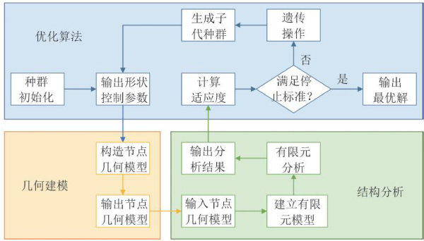 摘要:铸钢相贯节点整体性好、应力集中水平低,在空间结构中得到广泛应用.然而,现行规范缺少此类节点的承载力计算公式,工程师需要进行有限元分析完成节点的安全校核,并通过试错寻找合理的设计方案.为提高铸钢相贯节点的设计效率与设计质量,本文首先提出了一种新的形状优化方法,基于细分曲面实现了节点参数化几何模型的构建,通过ABAQUS二次开发实现了节点的自动化有限元分析,并采用遗传算法对节点的几何形状进行调整.其次,分别采用线性加权法、折中规划法 ?ε- 约束法和最大值最小化法4种目标合并方法构造了多工况优化问题的目标函数,将多工况优化问题转化为单目标优化问题.最后,将上述方法应用于某柱面网壳中的铸钢相贯节点.结果表明,所提出的方法能够在不显著增加节点体积的前提下,使节点峰值Mises应力下降 44%~60% ,有效降低了节点的应力水平.同时,4种目标合并方法中,最大值最小化法能够对各工况的受力需求做出最有效的兼顾,使节点在不同的荷载工况下具有相近的峰值Mises应力,从而使材料得到最充分的利用.