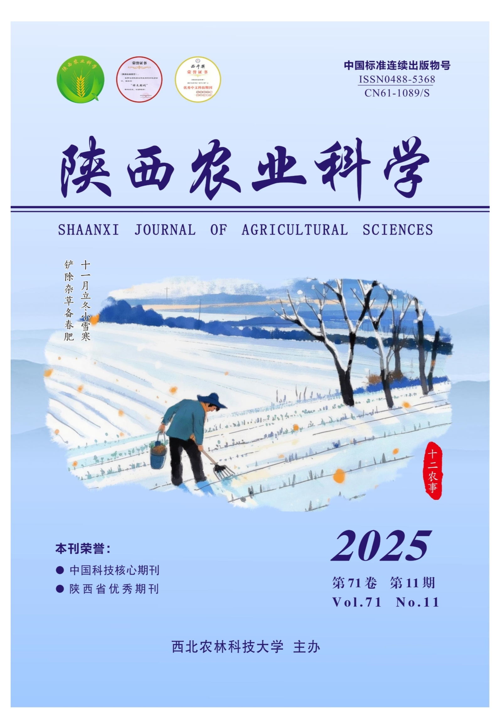 摘要:本研究旨在探讨不同镇压次数对商麦189生长发育、光合特性及产量的影响。通过设置不同的镇压处理,对商麦189在各个生育期的形态指标、光合参数以及最终产量进行测定和分析。结果表明,春季适当镇压能增加商麦189群体的有效分蘖数,分蘖成穗率,次生根数,降低植株株高;镇压处理能提高植株群体的叶面积指数(LAI),且一次镇压能有效延缓花后LAI的下降;镇压对不同生育期叶片SPAD值的影响表现为 T1>CK> T2,且T1处理在开花后能减小SPAD值的下降幅度,延缓叶片衰老;镇压对开花期叶片净光合速率( ρPn) 、气孔导度(Gs)、蒸腾速率(Tr)的影响表现为 T1>CK>T2 ,对胞间二氧化碳浓度(Ci)的影响与上述三个指标相反,表现为 T1CK>T2 ,且T1与CK、T2差异显著,镇压对穗数、穗粒数的影响与产量一致,均表现为 T1>CK>T2 ,对千粒重的影响表现为 T2>T1>CK ,但各处理间无显著差异。综合来看,春季一次镇压(T1)在提高小麦光合、生长发育及产量方面效果最优,研究结果为春季麦田管理提供了科学依据。