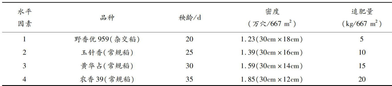 摘要:通过对4个机插秧水稻品种进行秧龄、密度和追肥量复合因素试验,研究其产量表现。结果表明:影响机插秧产量最主要的因素是追肥量,其次是品种和秧龄,影响最小的因素是插植密度。杂交稻品种对秧龄、密度和追肥量的需求与常规稻品种有一定差异,但产量表现更好。机插秧适宜最佳秧龄为20d,最佳插植密度为1.59万穴 ′667m2 ,最佳追肥量为 10kg/667m2 。